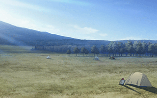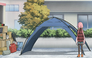 朝焼けを堪能したなでしこはキャンプの中へ入って二度寝する。