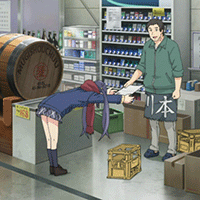 酒屋さんにビールケースを椅子代わりに座るようにすすめられるが…。