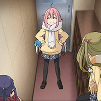 寒さでくしゃみするなでしこ。カイロをくれる志摩さん。