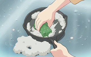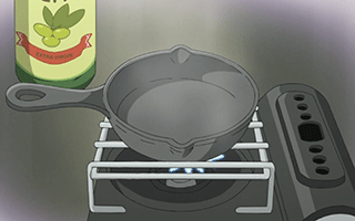 テスト前にもかかわらず、千明はあおいを道連れにして、学校の調理室であおいとスキレットのシーズニングを始める。