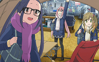 テストが終わって、野クルの面々はカリブーというアウトドア用品専門店へ繰り出す。そこにはいろいろな魅力的なグッズ満載だが、やはりお値段も品物に見合ったもので、ひたすらため息のなでしこ。