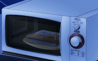 電子レンジでチンしたご飯を取り出すスバル。