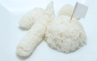 ご飯でエビフライとハンバーグとプリンを作って、白米お子様ランチを作りました。