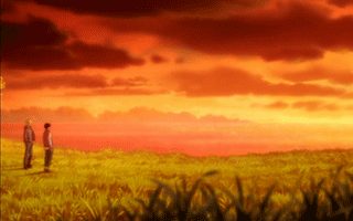 車の中にある毛布を取りに行くために英二と一緒に外へ出たアッシュは二人で夕焼けを見ていた。