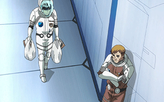 スバルはシャワー室で、艦内の連中からマンガを褒められる。