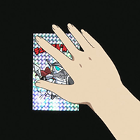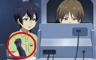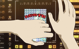 スバルがディスプレイに貼り付けたシールが”レアもの”だと気づき、イスズはぼやきながら必死で剥がそうとする。